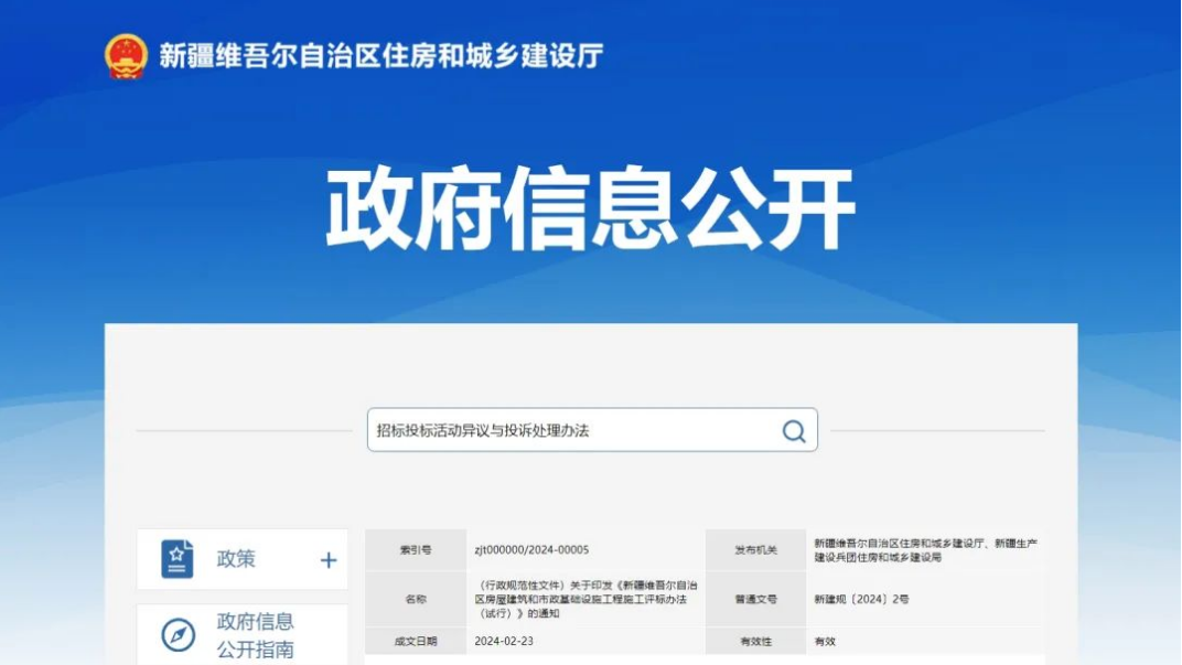 近日,新疆維吾爾自治區(qū)住房和城鄉(xiāng)建設(shè)廳、新疆生產(chǎn)建設(shè)兵團(tuán)住房和城鄉(xiāng)建設(shè)局印發(fā)《新疆維吾爾自治區(qū)房屋建筑和市政基礎(chǔ)設(shè)施工程施工評標(biāo)辦法(試行)》(以下簡稱《施工評...