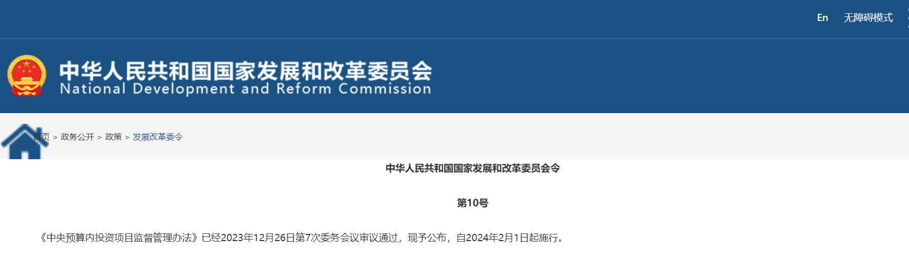 日前,國家發(fā)改委發(fā)布了《中央預(yù)算內(nèi)投資項目監(jiān)督管理辦法》(以下簡稱《辦法》),自2024年2月1日起施行。