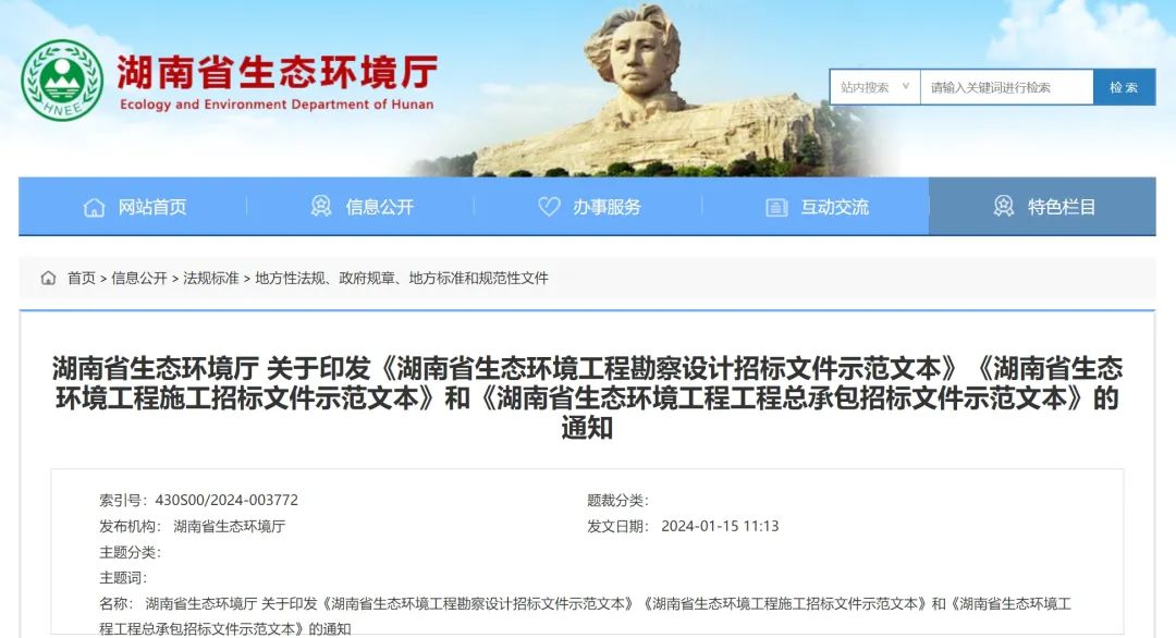 近日,湖南省生態(tài)環(huán)境廳印發(fā)《湖南省生態(tài)環(huán)境工程勘察設(shè)計招標(biāo)文件示范文本》、《湖南省生態(tài)環(huán)境工程施工招標(biāo)文件示范文本》和《湖南省生態(tài)環(huán)境工程工程總承包招標(biāo)文件示范文本》...