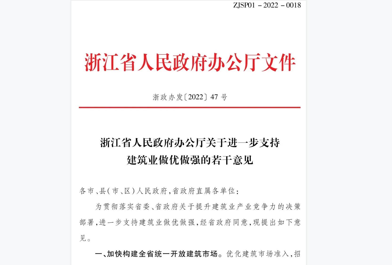 7月20日,浙江省人民政府辦公廳發(fā)布《關于進一步支持建筑業(yè)做優(yōu)做強的若干意見》,《意見》提出:要減輕建筑業(yè)企業(yè)負擔。全面推行保證保險、銀行保函替代現(xiàn)金繳納投標、履約、工程質(zhì)量、農(nóng)民工工資等保證金,加快推行電子保...