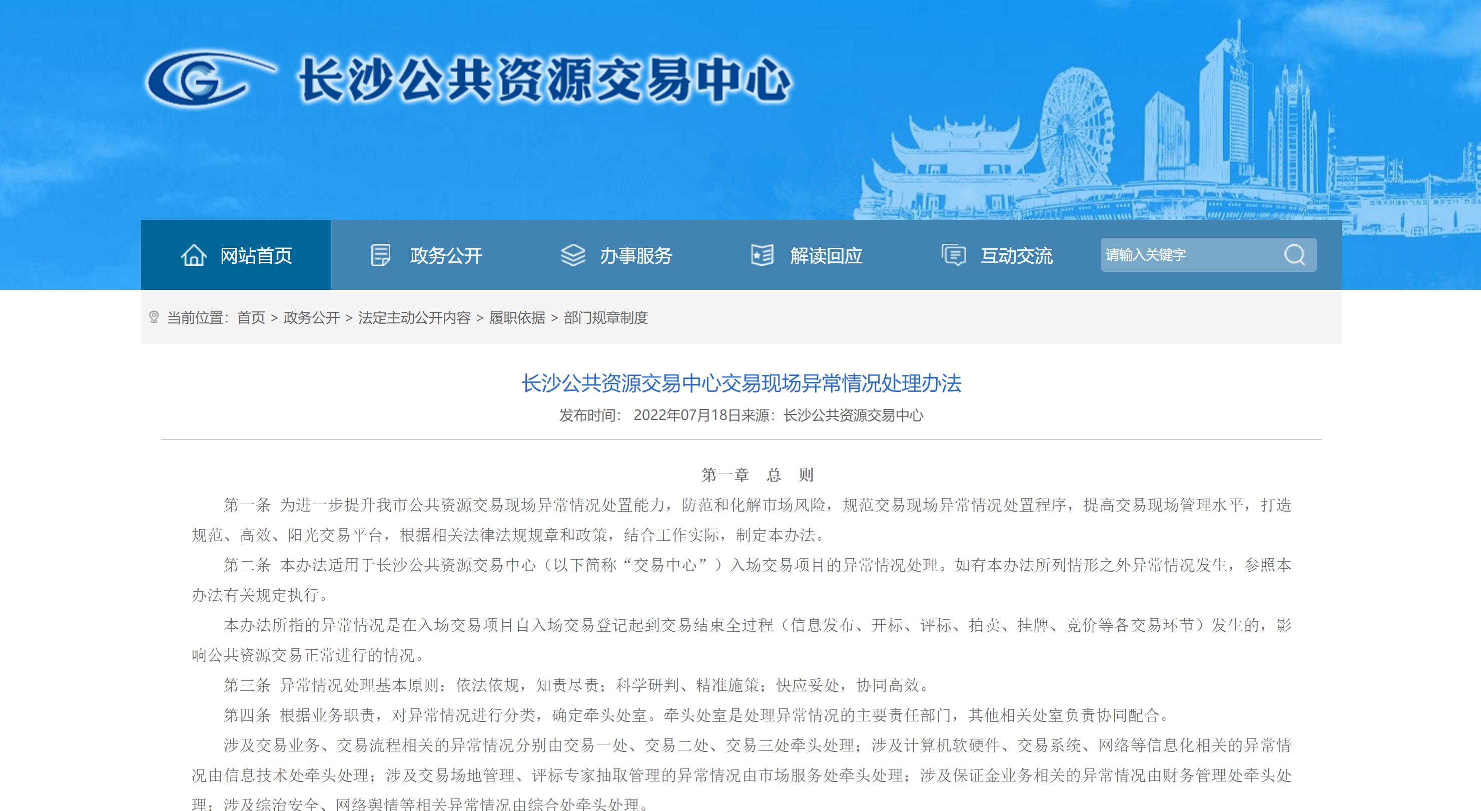 近日,長沙公共資源交易中心出臺了《交易現(xiàn)場異常情況處理辦法》(以下簡稱《辦法》),對入場交易項目全過程中發(fā)生的異常情況處理作出規(guī)定。