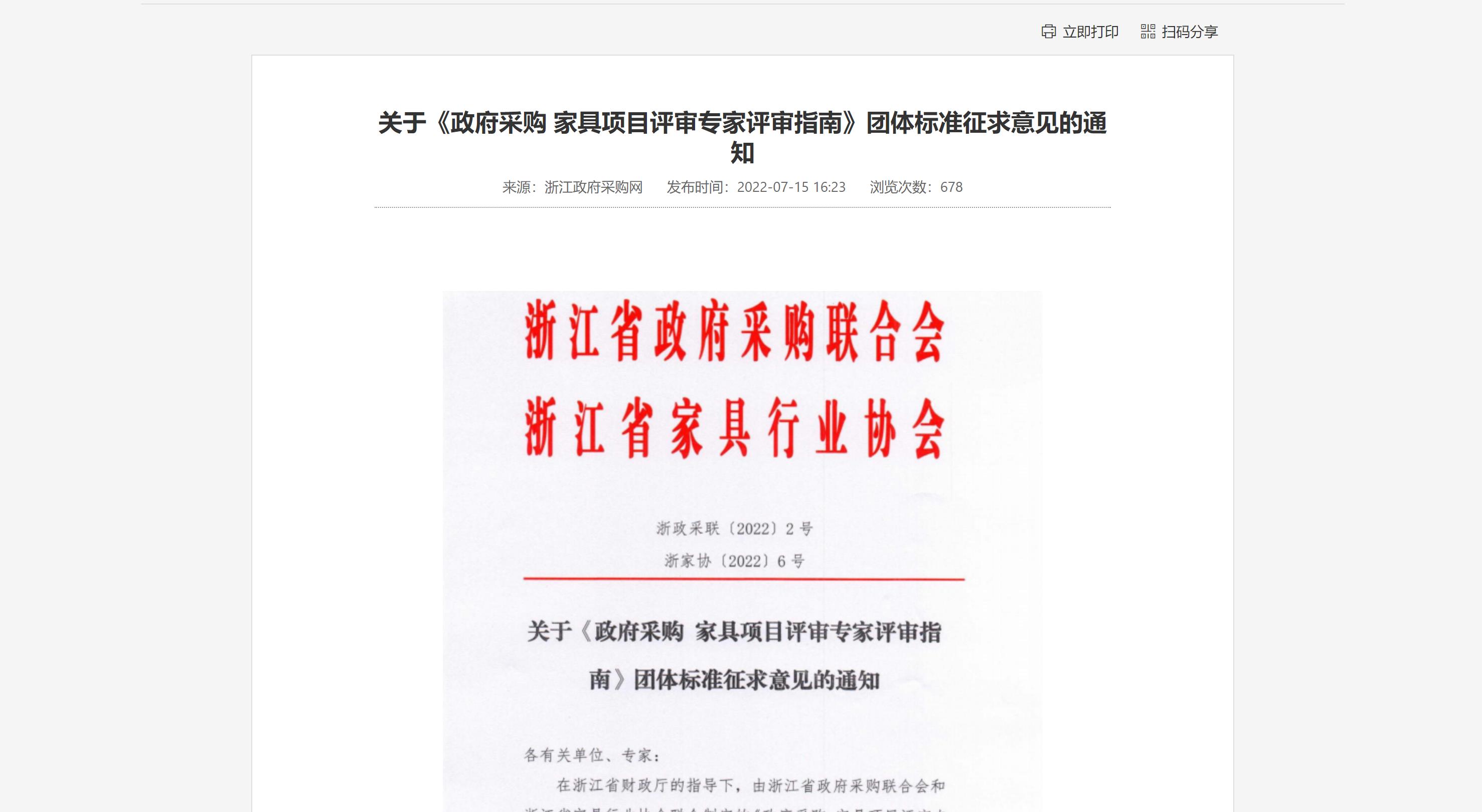 日前,浙江省政府采購聯(lián)合會和浙江省家具行業(yè)協(xié)會聯(lián)合制定《政府采購 家具項(xiàng)目評審專家評審指南》(以下簡稱《指南》)并公開征求意見。