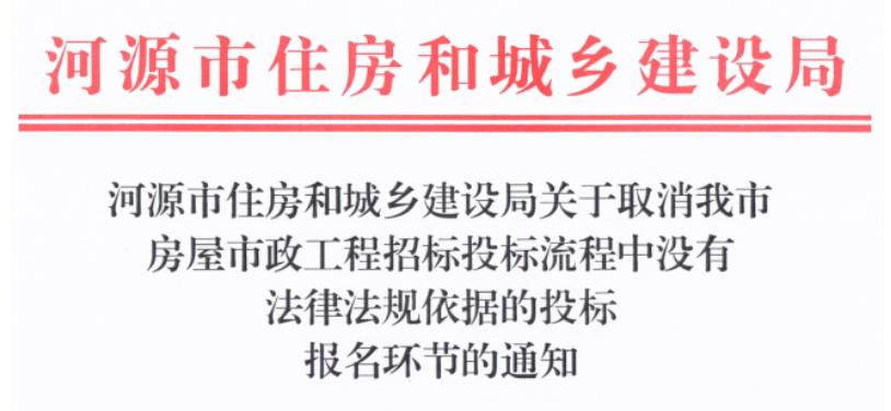 2022年4月,河源市住建局發(fā)布了“取消投標(biāo)報名環(huán)節(jié)”的通知,自5月1日起執(zhí)行。凡進(jìn)入我市各級公共資源交易中心的房屋市政工程招標(biāo)項目取消投標(biāo)報名環(huán)節(jié),并全過程接受...