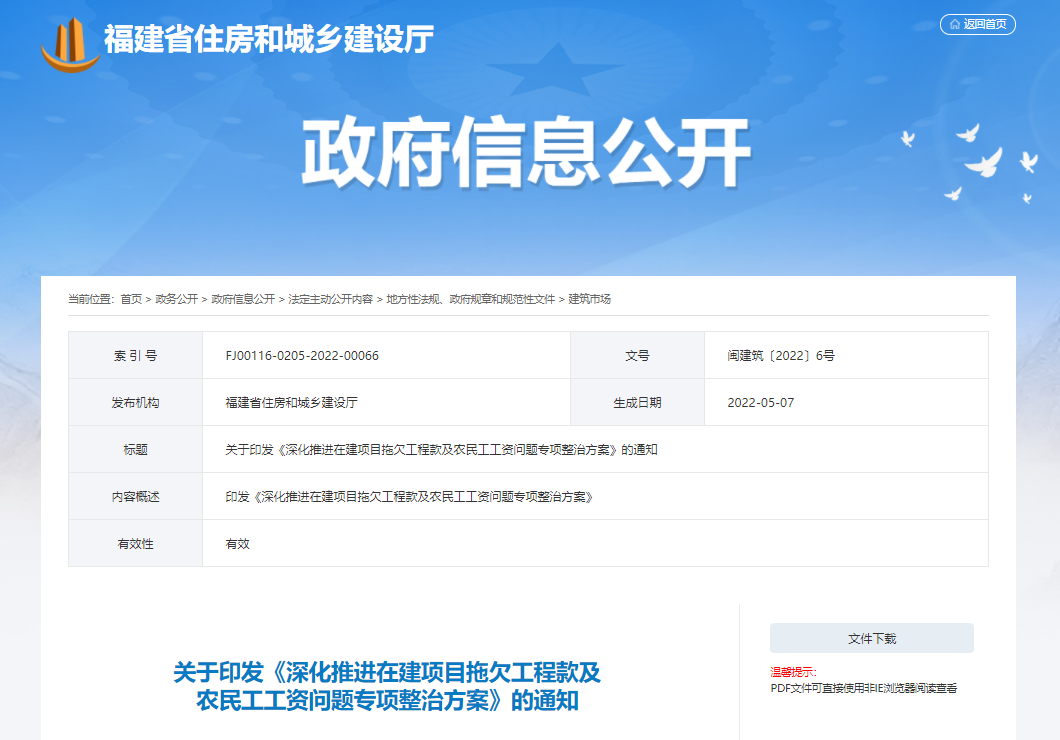 福建:深化推進拖欠工程款和農(nóng)民工工...
