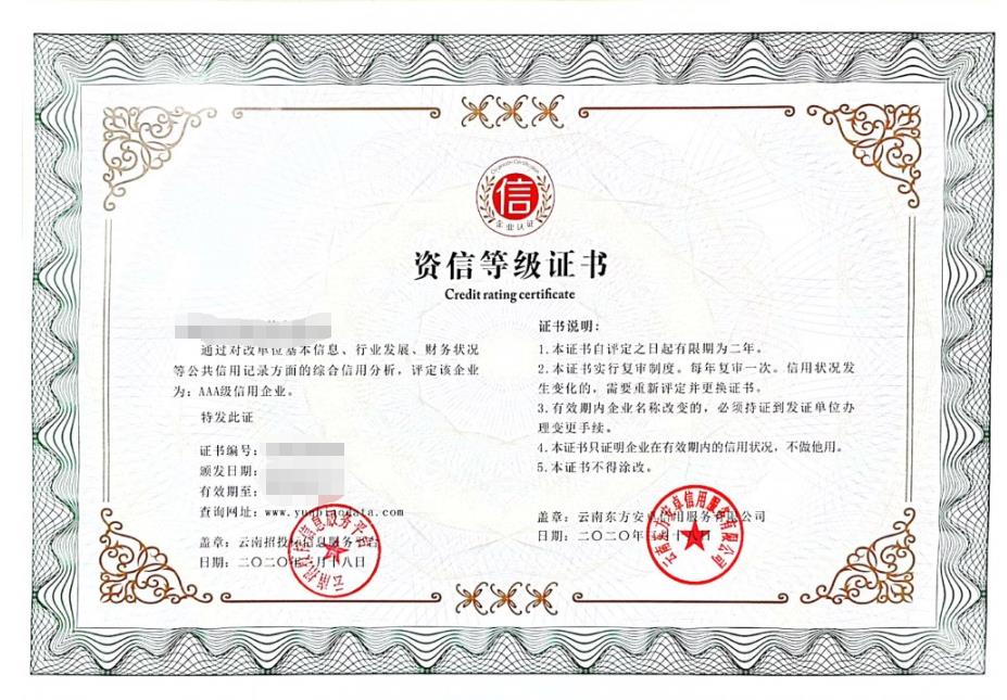 招投標AAA信用評級資質(zhì)為招投標針對性加分資質(zhì):
